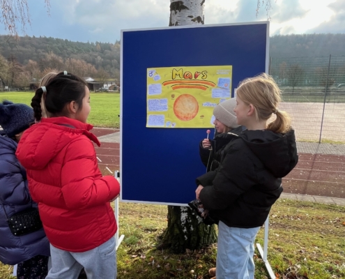 Aktuelles, Bilinguale Grundschule, MINTUm Schülerinnen und Schülern der Klassen 5 ein Gefühl für Raum, Zeit und Dimensionen zu vermitteln, startete Mathelehrer Malte Klimczak ein Projekt, bei dem es um die Erstellung eines Planetenlehrpfades ging - direkt auf dem Schulgelände…