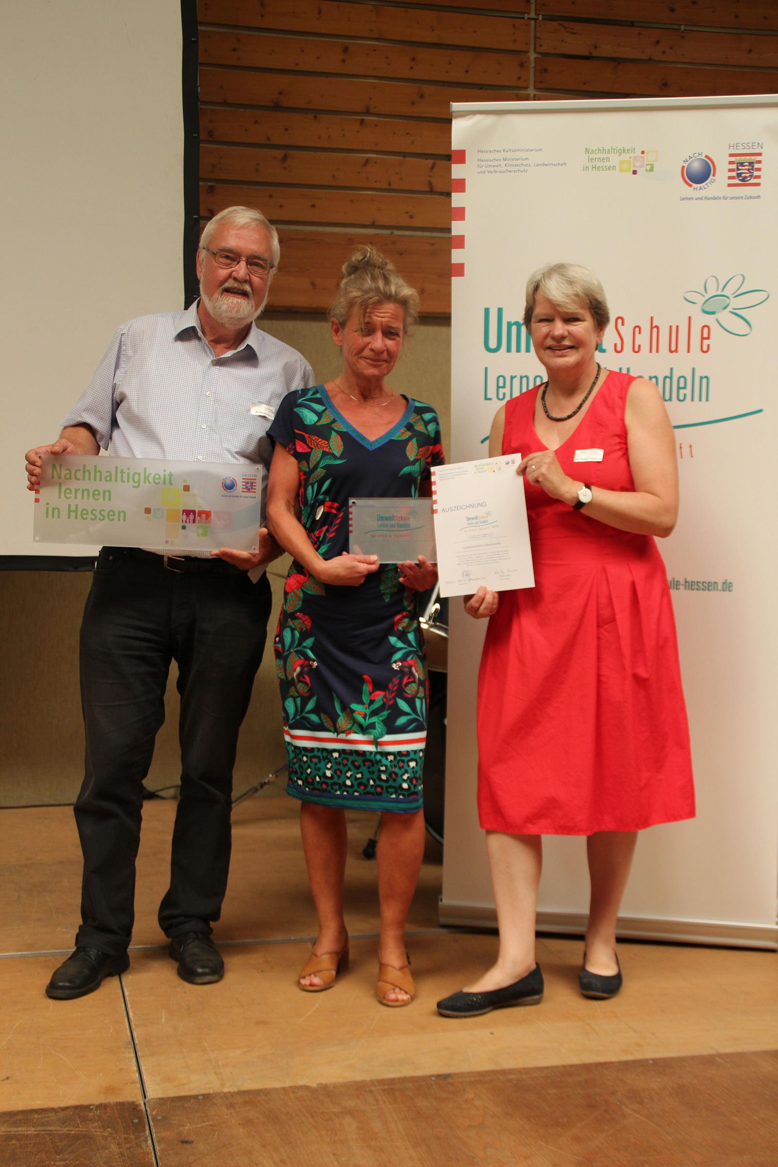 „Heute werden die nordhessischen Schulen als Umweltschulen geehrt, die mit ihren spannenden Projekten zu Themen der nachhaltigen Entwicklung gezeigt haben, dass sie Verantwortung für das eigene Handeln übernehmen wollen“, erklärte die Staatssekretärin im Umweltministerium Dr. Beatrix Tappeser bei der Verleihung der Auszeichnung „Hessische Umweltschule“ in Form einer Urkunde und eines Schildes, das die Schule offiziell als „Umweltschule“ ausweist. Ergänzend zu der bekannten Umweltschul-Plakette wurde die neue Plakette der Dachmarke „Nachhaltigkeit lernen in Hessen“ überreicht. Die Auszeichnung erfolgte in Fritzlar in Anwesenheit von Henning Smolka vom Jugendwaldheim Roßberg in Zuständigkeit für die Marburger Umweltschulen und Steinmühlenlehrerin Carmen Bastian als Ökologische Stelle der Steinmühle.
