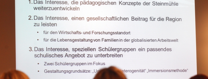 Bekanntgegeben wurde gegen Ende der Veranstaltung unter anderem, dass die Bilinguale Grundschule Steinmühle die Anschlussfähigkeit an das Hessische und das Internationale Schulsystem ermöglichen wird. Sie verfügt dazu bereits jetzt über entsprechende Kooperationspartner.