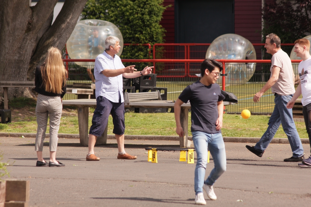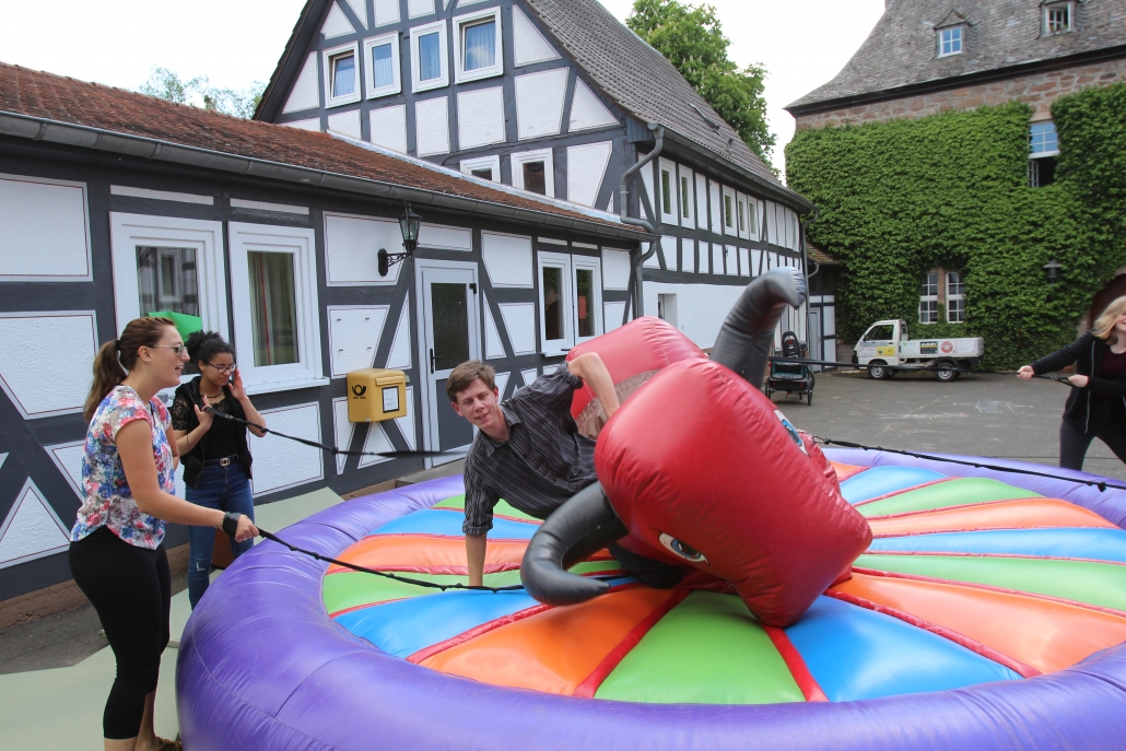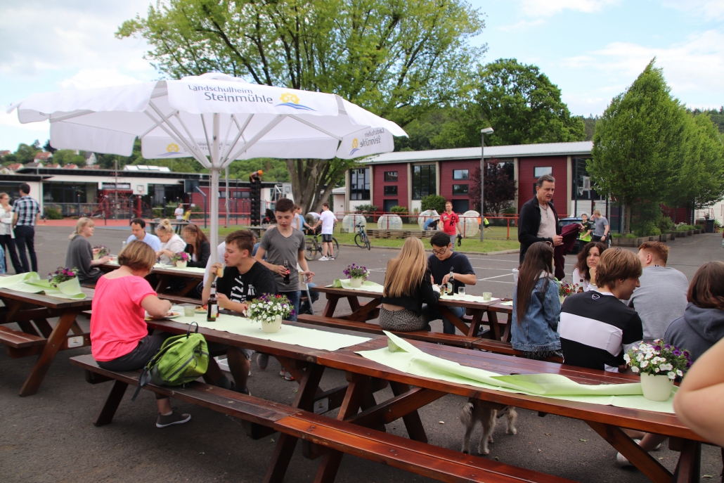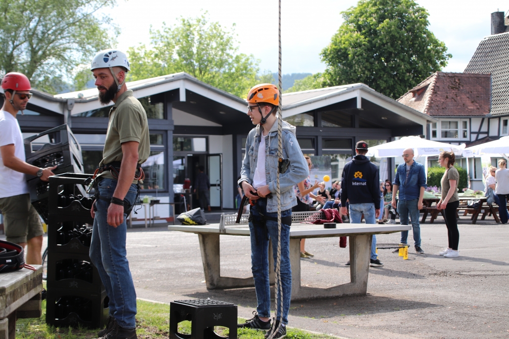 Das Wetter spielte gut mit beim alljährlichen Familientag des Internates Steinmühle. Die Familien aller Internatsschülerinnen und -schüler waren eingeladen, um gemeinsam in lockerer Atmosphäre gesellige Stunden zu verbringen. Verschiedene Angebote sorgten für Kurzweil: Vom Kanufahren auf der Lahn über Malen mit Fingerfarben für junge Besucher, Bullenreiten und Bubble Balls bis hin zu Kistenklettern: Alle Gäste unterhielten sich bestens, während die Sonne vom Himmel strahlte. Den Abschluss des Tages bildete ein Grillbuffet, bei dem die Köche ihr Können unter Beweis stellten.