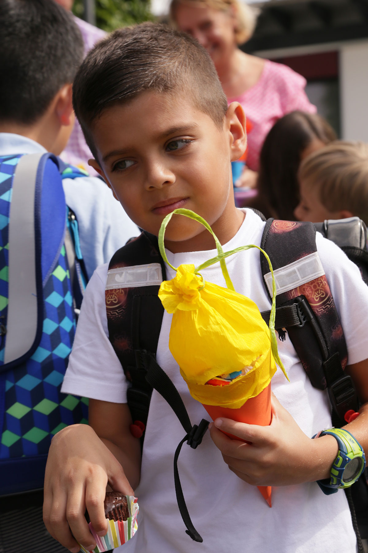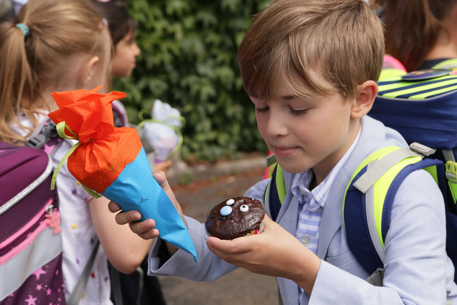 Die kleinen Mädchen und Jungen mit ihren teilweise großen Schultüten ließen erkennen, dass sich am Montag etwas ganz Besonderes auf dem Steinmühlencampus abspielte: Die Schülerinnen und Schüler des neuen Bilingualen Grundschulzweigs wurden eingeschult. Dieser Tag bedeutete für die Steinmühle das Erreichen eines weiteren Meilensteins. Am Cappeler Steinmühlenweg befinden sich nun Gymnasium, Internat und Bilinguale Grundschule zusammen auf demselben Gelände.