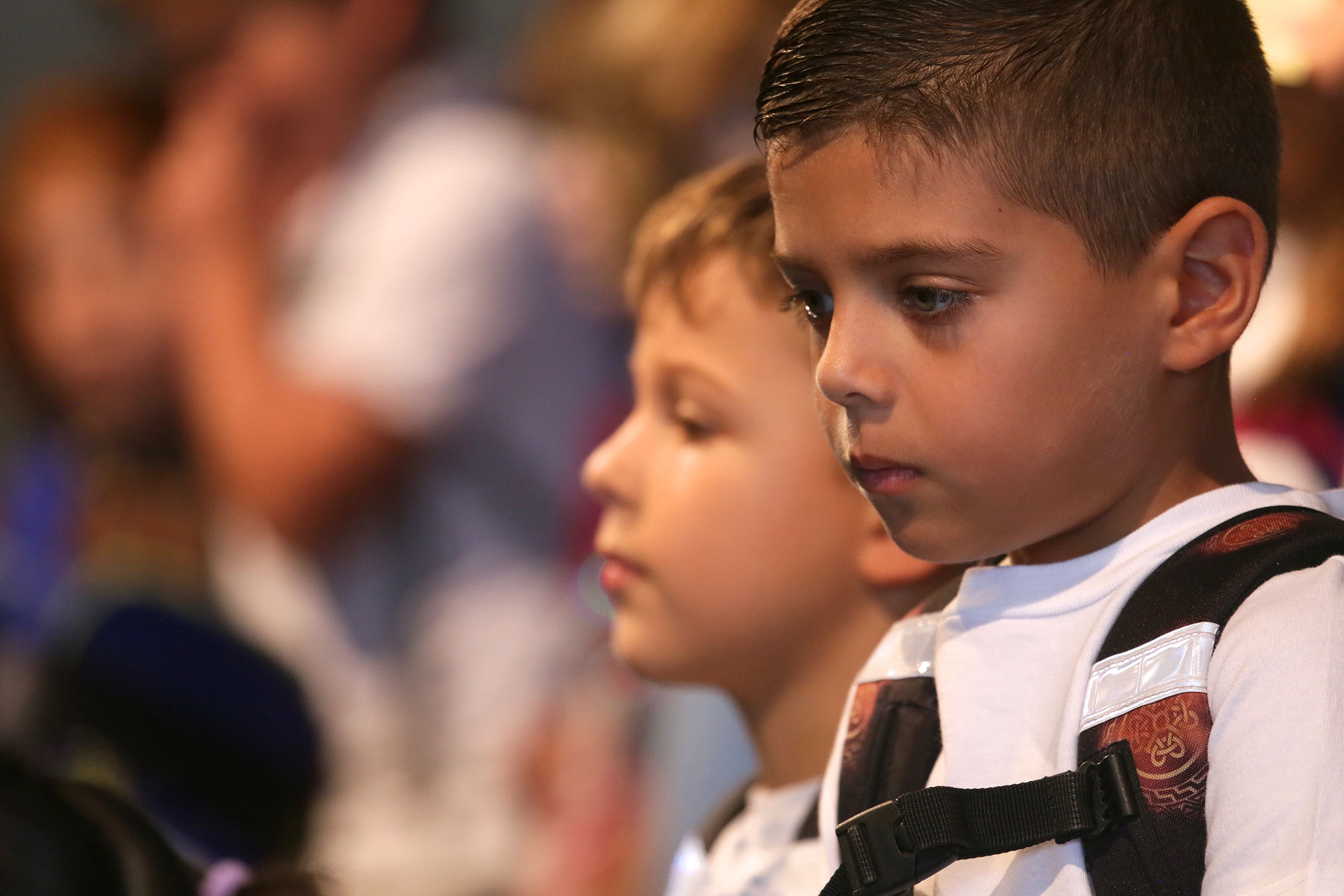 Es ist schwer zu sagen, wer aufgeregter war: Die Schülerinnen und Schüler, ihre Eltern – oder vielleicht die Lehrkräfte? Im Forum platzierten sich um 14 Uhr Grundschüler*innen, Eltern und Angehörige in den Sitzreihen.