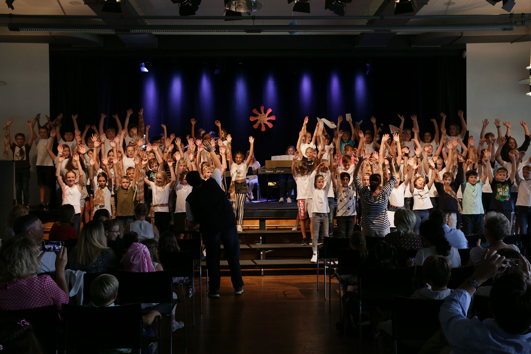 Um die allseitige Aufregung etwas zu zerstreuen, präsentierten die Klassen 6 einen Ausschnitt aus ihrem großartigen Vorjahres-Musical „Kwela Kwela“. Die Unterhaltung von Kindern für Kinder brach ein wenig das Eis und viele staunten über Stimmvolumen und Rhythmusgefühl der großen Darstellergruppe. Ältere Schülerinnen und Schüler, die für musikalische Unterhaltung mit ihren Instrumenten an der Steinmühle schon bekannt sind, trafen bei ihrem Auftritt in jeder Hinsicht die richtigen Töne.