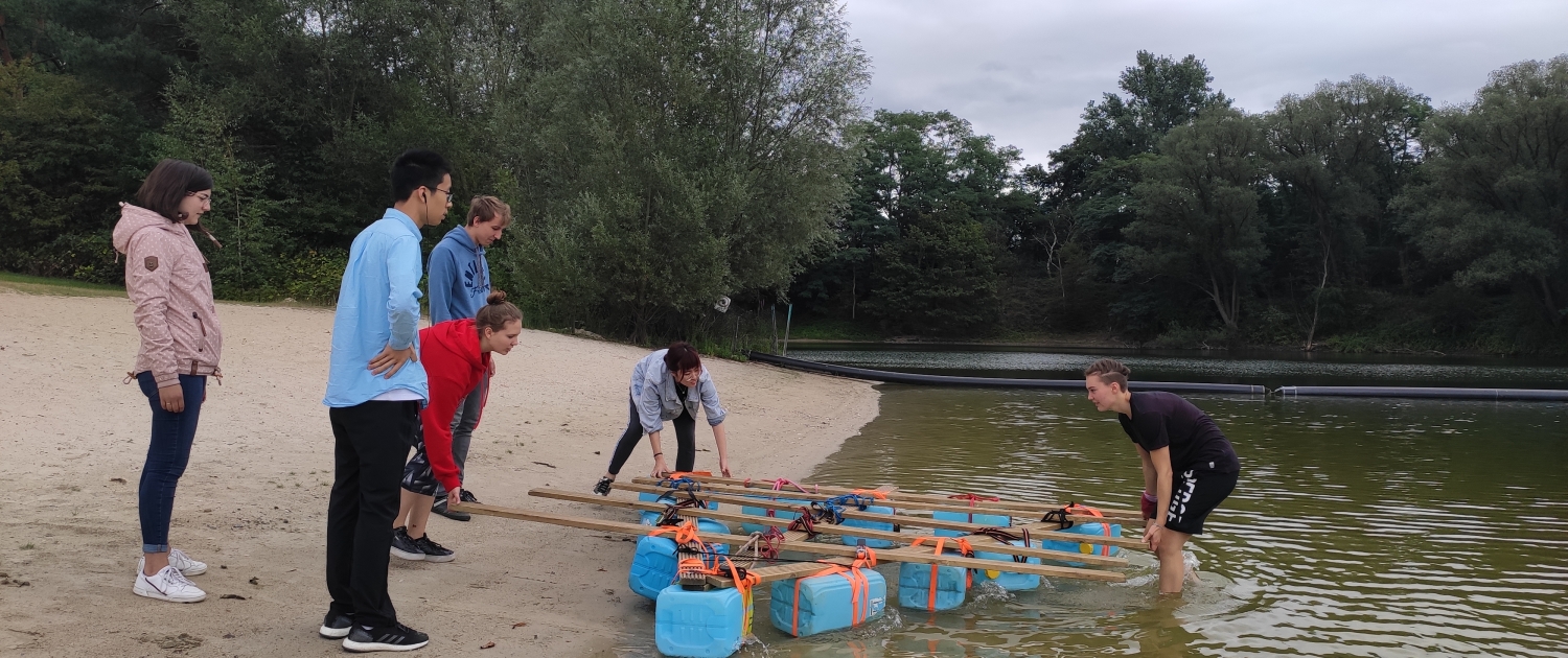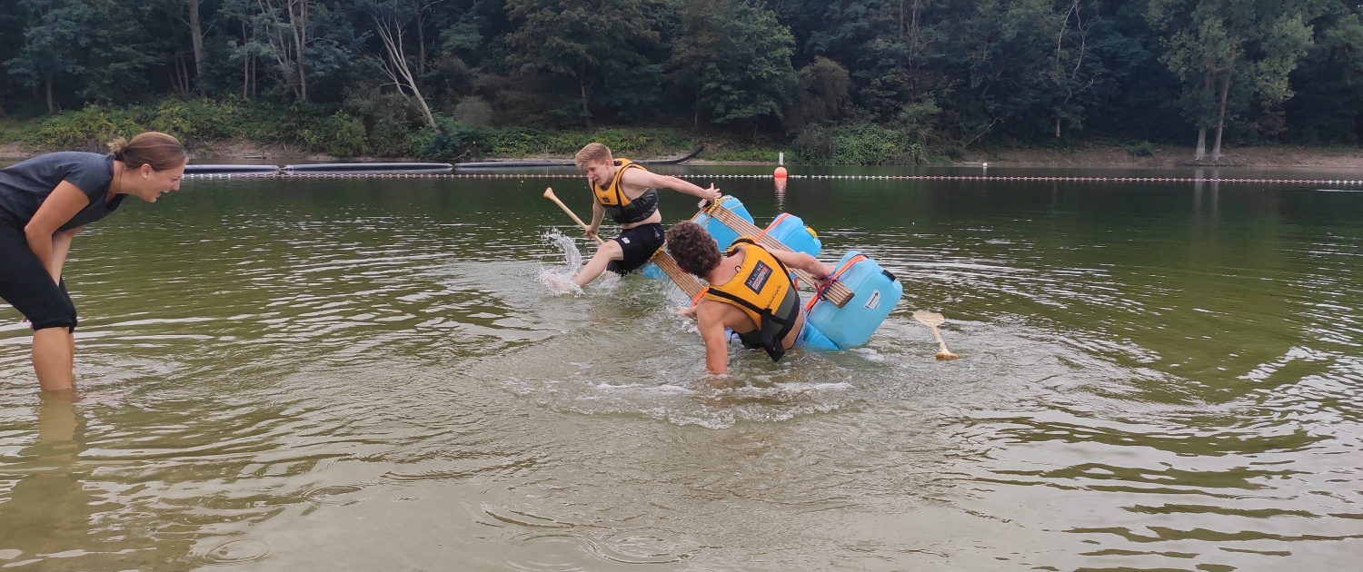Das Bremerhaus, eine komplett neue Wohngruppe unter neuer pädagogischer Leitung, fand sich beim Floßbauprojekt im Naturfreibad Vingst in Köln zusammen. Kämpfte die Gruppe tagsüber noch erbittert um das beste und vor allem tragfähigste Floß, waren am Abend alle Rivalitäten vergessen: Und so wurden beim gemütlichen Grillen in der Unterkunft des Ruderclubs Germania in Düsseldorf bei bester rheinischer Manier bis tief in die Nacht über die spektakulärsten (Wasser-) Geschichten gelacht.