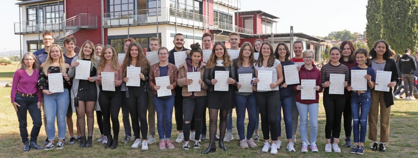 Als Elftklässler/innen hatten sie die Leistung erbracht, nach Eintreffen der Urkunden stellten sie sich jetzt als Zwölftklässler/innen dem Fotografen: Auch in diesem Jahr erwarb eine große Gruppe von Schülerinnen und Schülern an der Steinmühle wieder das weltweit anerkannte Cambridge Zertifikat, das hohe Kenntnisse und Fähigkeiten in der englischen Sprache bescheinigt.