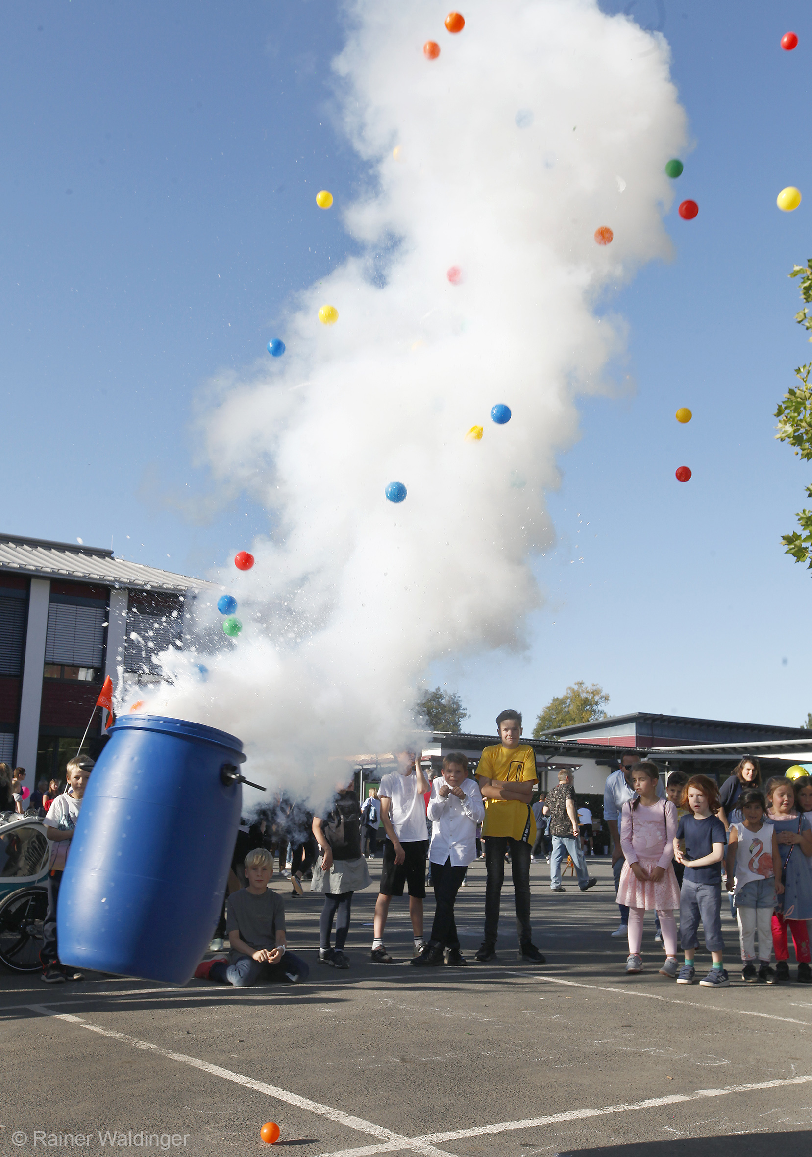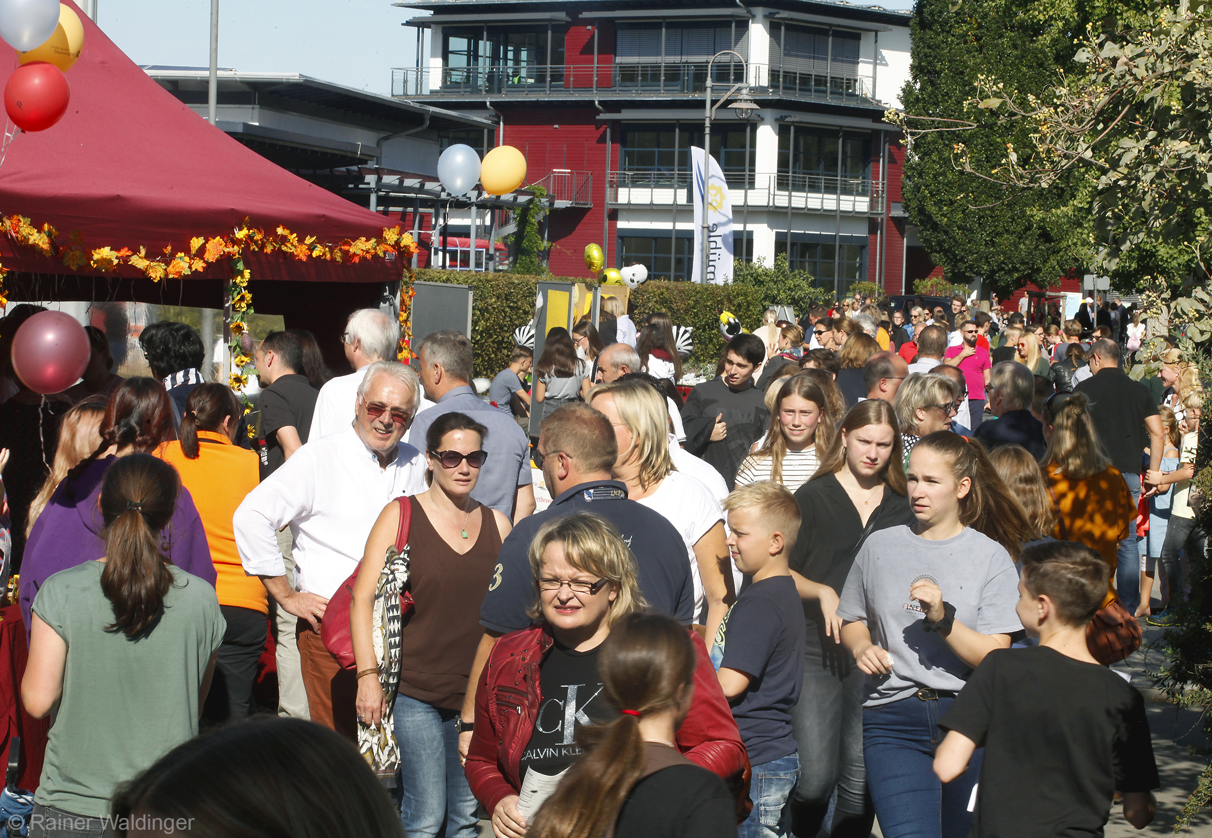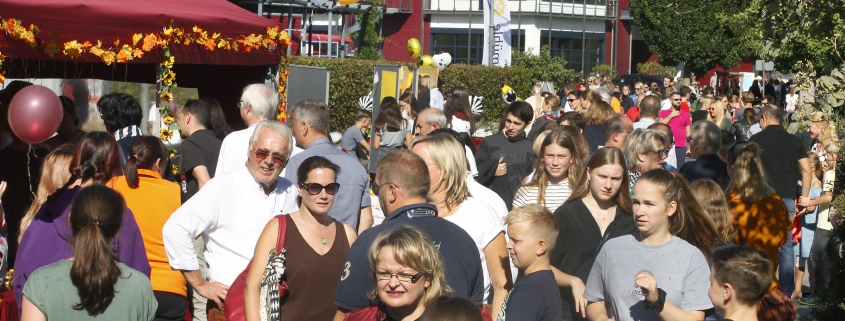 Noch nie zuvor waren so viele Besucher zum Herbstfest an den Steinmühlenweg gekommen. Noch niemals zuvor gab es auch so viel Neues zu bestaunen. Nach den neuen Gebäuden des Forums und des Lerncentrums 5/6 war Anfang diesen Jahres das Atrium eingeweiht worden, ein neues Gebäude für die Mittelstufe. Als dies geschafft war, wurde die Sanierung des Hauptgebäudes begonnen und pünktlich zum Schuljahresbeginn fertiggestellt. Parallel verlief die Sanierung der Cafeteria. Damit einher gingen die Neugestaltung des Schulhofes, die Finalisierung der Parkplatzanlage und die Verlegung der Buswendeschleife vor die Schule. Ein zweiter kleiner Schulhof befindet sich nun vor dem Atrium.