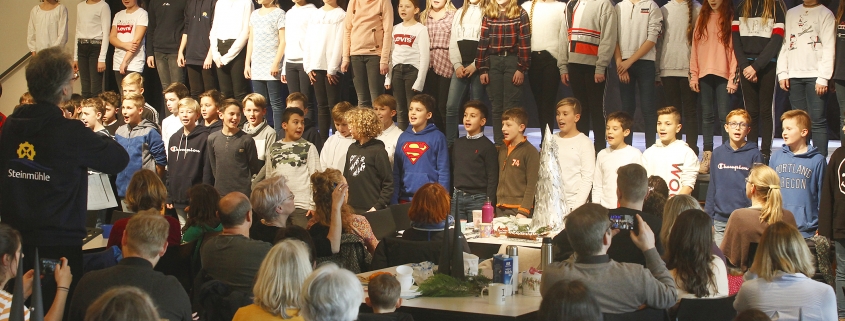 Erstmals standen die Kinder unserer Bilingualen Grundschule bei einem Steinmühlen-Winterkonzert auf der Bühne und eroberten mit ihrem Gesang die Zuschauerherzen. Für alle Beteiligten ein sehr berührender Moment. Die im Programm nachfolgende Bläserklasse 6 machte auf ihren Instrumenten schon fast einen routinierten Eindruck und man merkte ihrem Spiel positiv an, dass schon der eine oder andere Auftritt hinter den Schüler*innen lag.