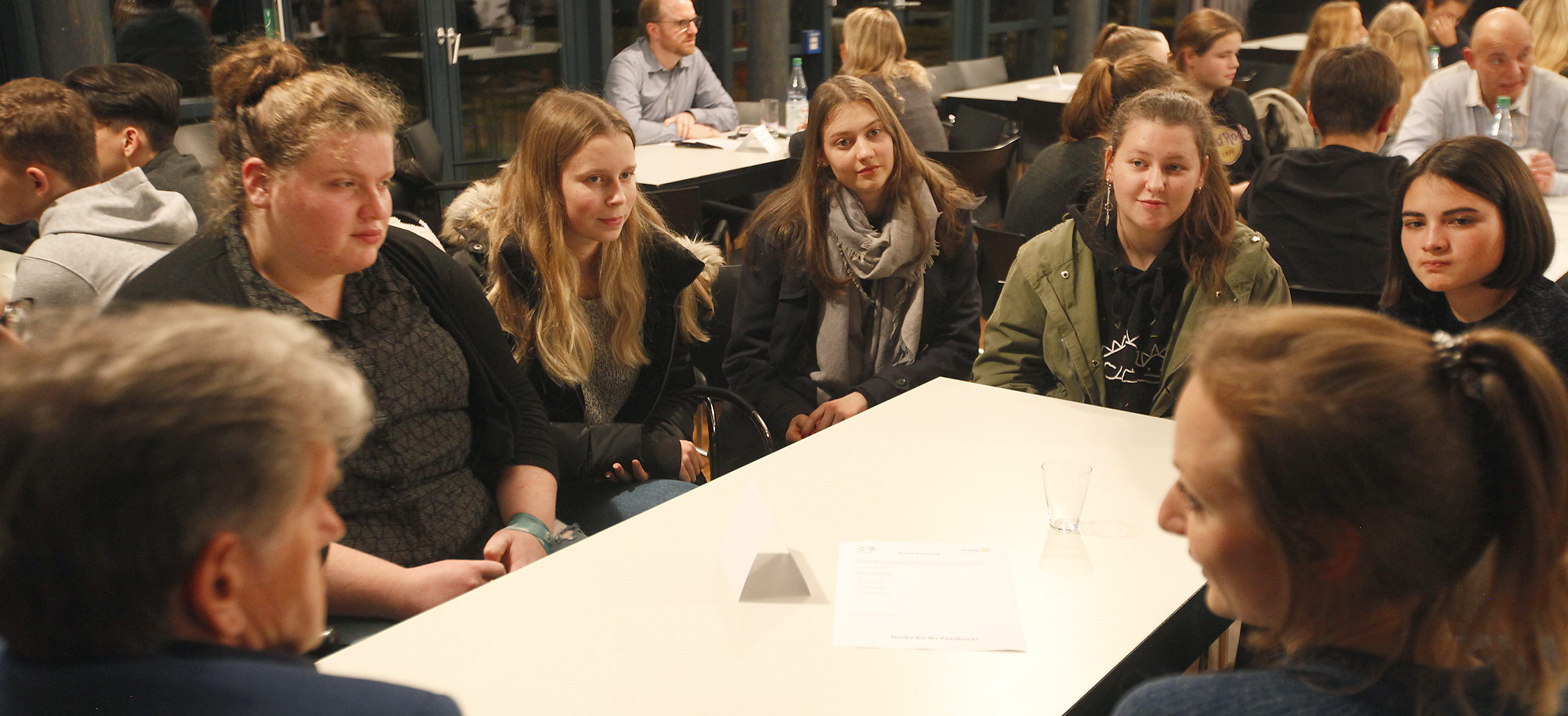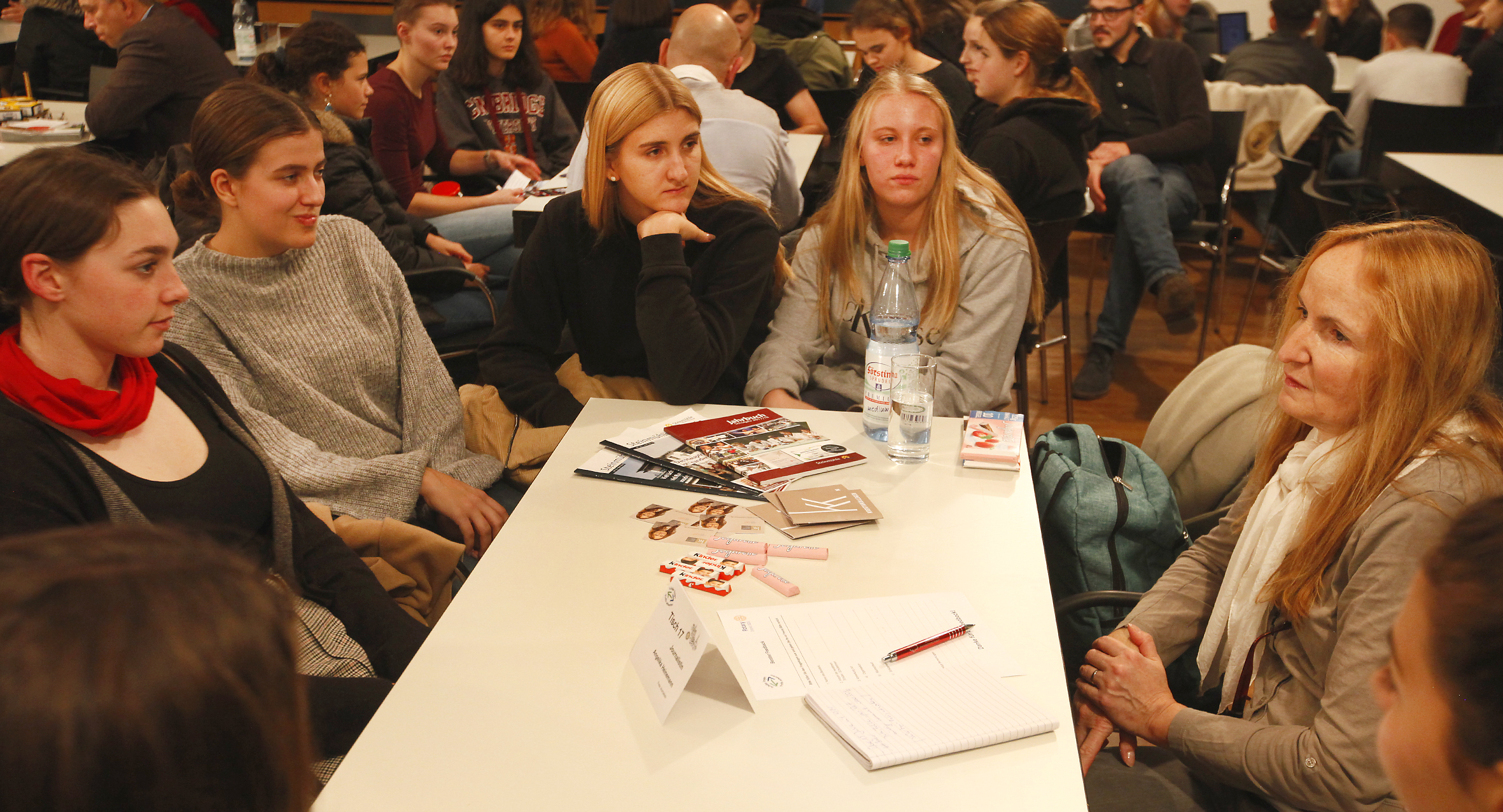 Drei Berufe konnten sich die Schüler*innen für ein Expertengespräch am runden Tisch aussuchen. In einer Runde mit maximal acht Mitschüler*innen konnte der oder die Experte/Expertin 20 Minuten lang befragt werden. Dann gab es zwei weitere Runden mit je einem ausgewählten Profi.