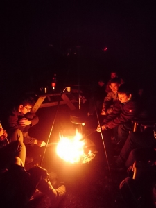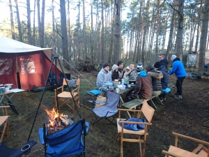 Während man sich tagsüber beim Schießen mit Pfeil und Bogen einen Eindruck davon verschaffen konnte, wie das Leben in der wilden Natur einst gewesen sein muss, wurde am Abend mit dem Entzünden des Lagerfeuers die einzigartige und unvergleichliche Stimmung erzeugt, ohne die kein echtes Winterzelten komplett wäre und die das Erlebnis der Natur erst echt macht. Im steten Schein der Flammen und vom Prasseln der Glut begleitet, wurde mit alten Freunden und neuen Bekanntschaften gesungen, gekocht, gegessen und vor allem viel gelacht.