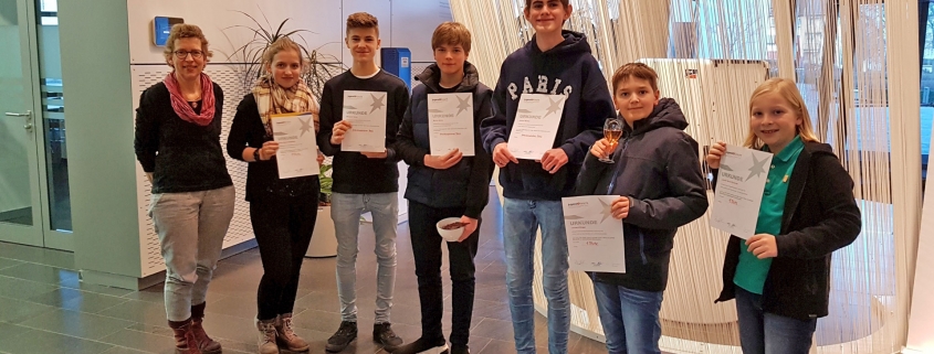 Leonard Berger, Mats Egbring und Leontin Schmidt waren die Sechstklässler, die im Wettbewerb „Schüler experimentieren“ unter Betreuung der Lehrkräfte Dr. Jutta Töhl-Borsdorf und Dr. Dietmar von der Ahe Platz 1 in den Geo- und Raumwissenschaften belegten und zusätzlich den Sonderpreis Umwelttechnik mit nach Hause nahmen. Sie verglichen Öko-Äcker mit normalen Äckern. Dabei hatten sie insgesamt fast 20 Bodenproben untersucht und festgestellt, dass Öko-Äcker sowohl durch niedrige Nitratgehalte als auch durch die Fähigkeit, Nährstoffe zu binden und wieder freizusetzen, punkten können. Konventionelle Äcker und besonders mit Gülle gedüngte Äcker wiesen fast durchgehend bedenkliche Nitrat- und auch Nitritgehalte auf. Das Thema, die Arbeit und ihre Ergebnisse fand die Jury die höchstmögliche Platzierung wert. Nun geht es als nächstes zum Landeswettbewerb nach Kassel.