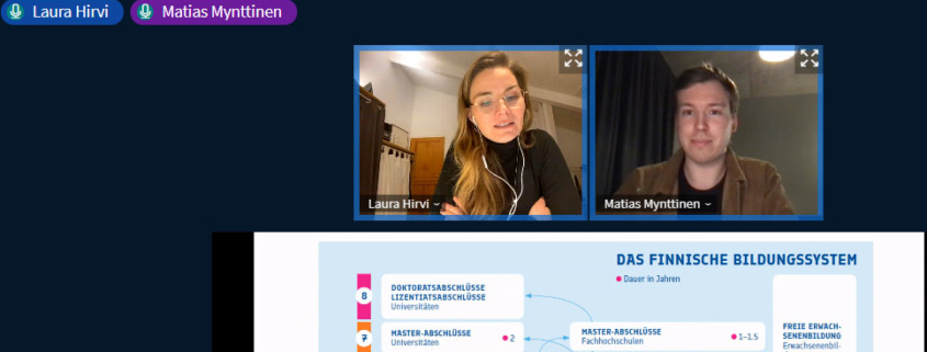 Was also hat es mit dem finnischen Bildungsystem auf sich, das doch die Weichen für’s Leben der jungen Menschen in Finnland stellt? Via Big Blue Button konnten die Steinmühlen-Lehrkräfte kürzlich einem Vortrag von Dr. Laura Hirvi folgen. Die Leiterin des Finnland-Instituts in Berlin berichtete über das finnische Bildungssystem.