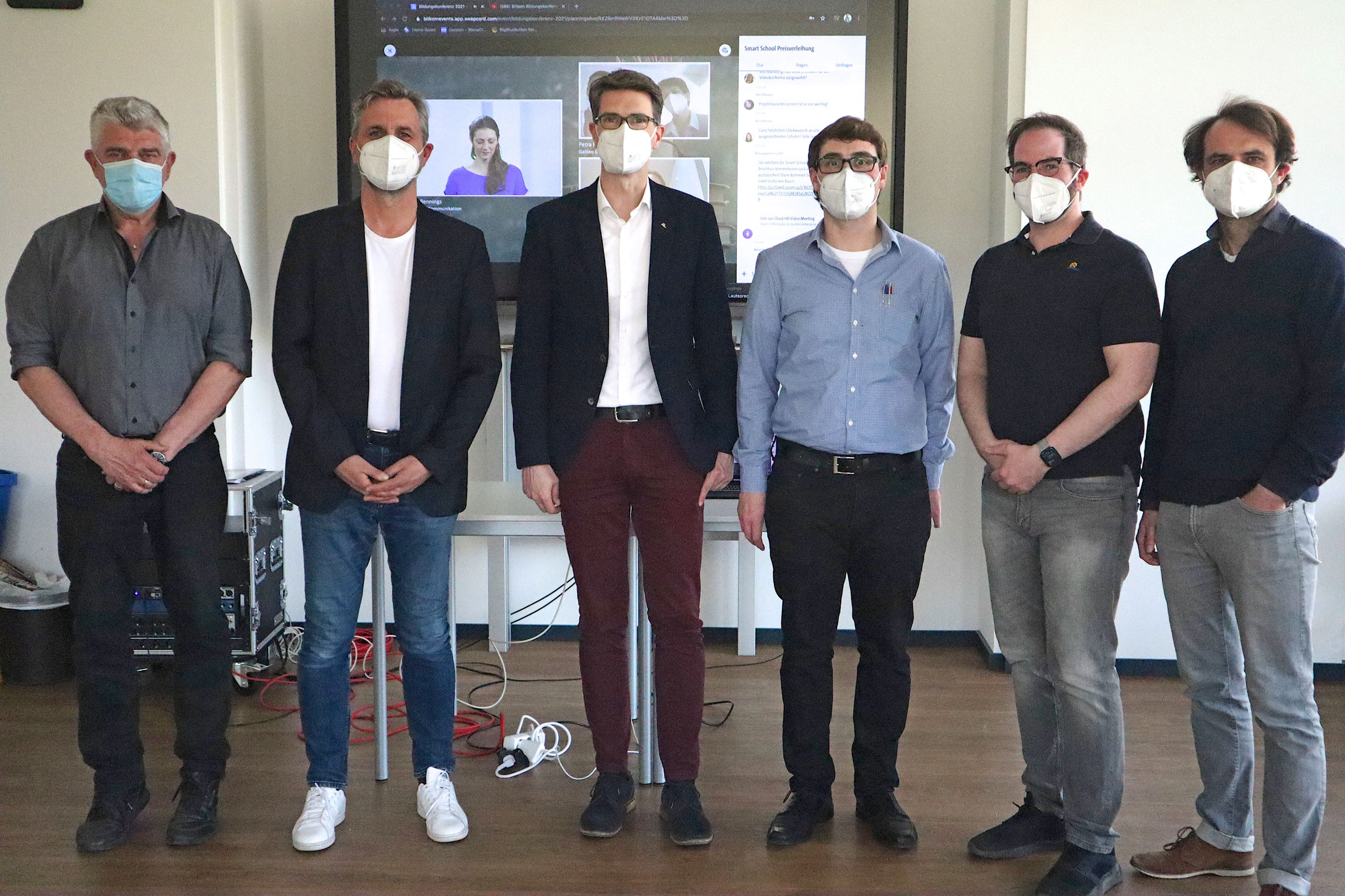 „Es macht einen sehr stolz,“ freute sich Schulleiter Björn Gemmer über das Abschneiden der Steinmühle als einzige hessische Siegerschule unter allen Schulformen. Schulleiterkollege Bernd Holly und Fabian Küster von der IT-Abteilung der Steinmühle erläuterten dann im Live-Plenum, wie Best Practice in der Steinmühle aussieht – besonders während der Pandemie, aber nicht nur. Erwähnt wurde natürlich die schuleigene StoneApp, erwähnt wurden aber auch die über alle Alterssstufen hinweg engagierten Lehrkräfte, „…ohne die wir diesen Preis niemals hätten gewinnen können.“ Stolz ist die Steinmühle nicht nur seit Gewinn dieses Preises auch auf ihren Digitalisierungsbeauftragten Malte Klimczak. Wann immer Not an Unterstützung und Tipps herrscht, war und ist er zur Stelle. „Always available“ – immer abrufbereit ist auch Till Buurman in Sachen IT. Denn wenn die Technik klemmt, läuft nun mal nichts mit Online-Konferenzen, Lerntools & Co.