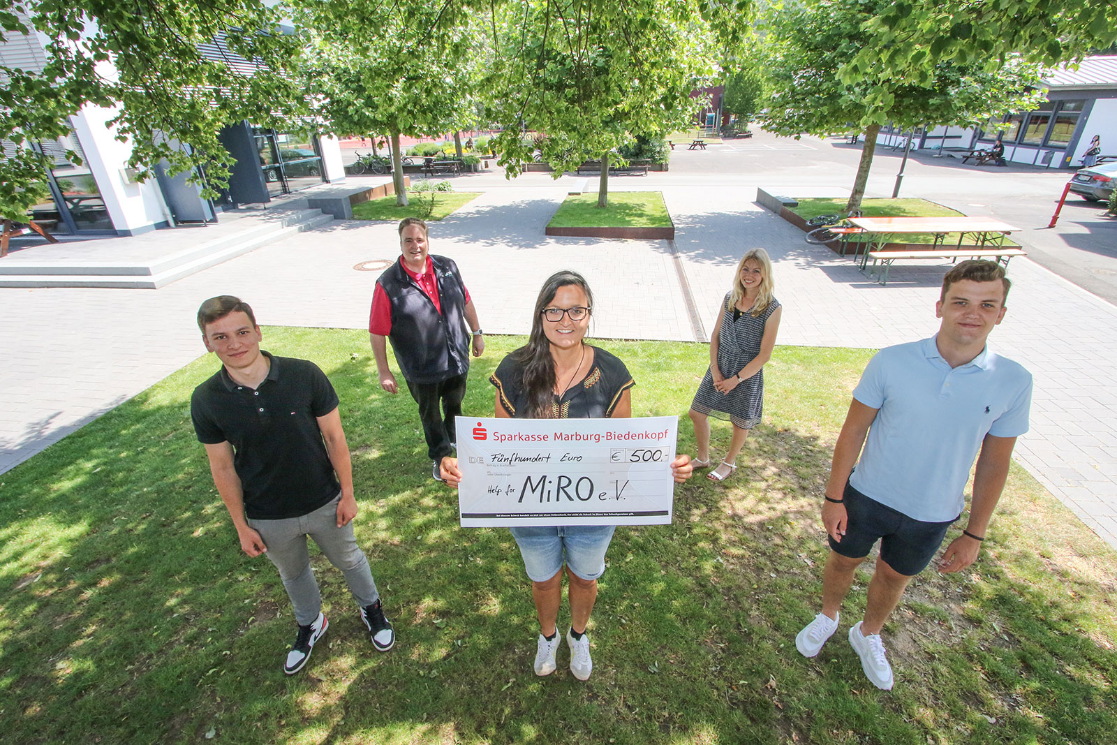 In Abständen engagieren sich immer wieder Schülerinnen und Schüler der Steinmühle für „Help for MiRO“, das Herzensprojekt der Redakteurin Nadine Weigel. Im Sommer wurde nun übergeben, was im vergangenen Winter gesammelt wurde. Kleine Schoko-Nikoläuse mit persönlichen Grüßen verkaufte damals die Schülervertretung (SV) und spendete nun offiziell den Gewinn von 500 Euro an Nadine Weigel. Die Summe wird dem kenianischen Waisenhaus in voller Höhe zufließen. Wer einmal schauen möchte, was Nadine Weigel und ihr Verein in den vergangenen zehn Jahren für das Kinderhilfsprojekt auf die Beine gestellt haben, kann sich hier informieren: www.help-for-miro.de.