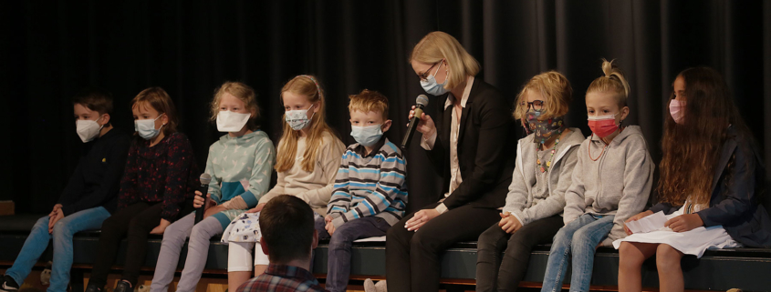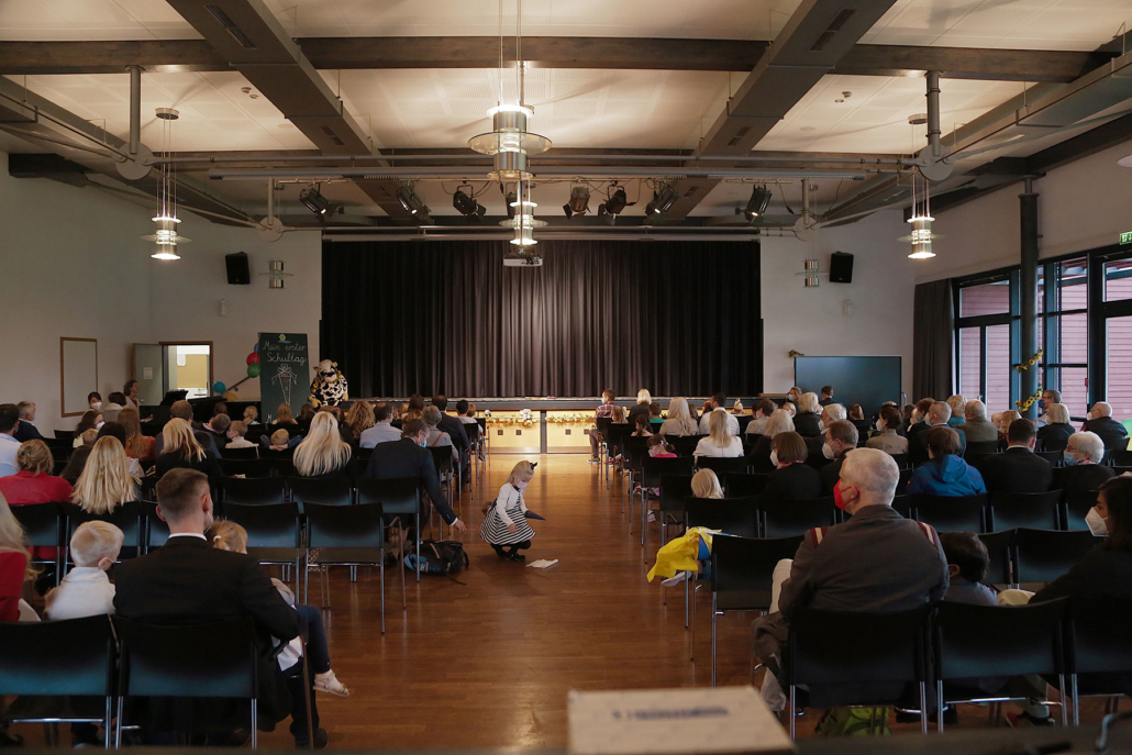 Im Anschluss wurden Grußworte an die Zuhörerschaft übermittelt, die froh gelaunt und gleichzeitig etwas aufgeregt den Worten lauschte – verständlich an diesem Tag, bedeutete er doch für die Kleinsten den Beginn eines neuen Lebensabschnittes. Zusammen mit zwei Kindern aus jeder Klasse gab Janine Küster danach einen Einblick in das Schulleben der Bilingualen Grundschule Steinmühle, um den kommenden Alltag schon einmal etwas greifbarer zu machen.