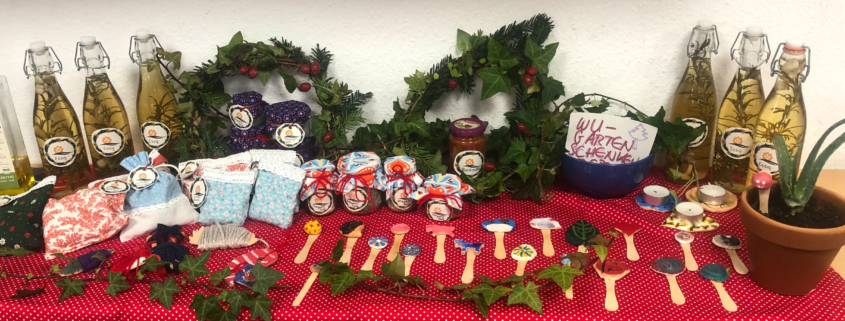 Mehr BIO geht nicht: Im Wahlunterricht (WU) Schulgarten zeigten sich Acht- und Neuntklässler*innen besonders kreativ. Aus den Produkten, die im schuleigenen Garten wachsen, bereiteten sie unter Anleitung von Steinmühlenlehrerin María Ramos Iglesias mit großem Engagement originelle Produkte und erwiesen sich dabei als Kenner*innen der Feinschmecker-Küche. Die Ware versahen sie zur Optimierung noch mit dem Steinmühlen-Logo. So entstanden zum Beispiel dekorative Essig-Erzeugnisse, Oregano-Salz, Ratatouille-Gläschen, Lavendelsäckchen und einiges mehr. Die Produkte, die sich bestens als Weihnachtsgeschenke eignen, liegen im Lehrerzimmer aus und hoffen gegen eine freiwillige Spende auf Abnehmer.