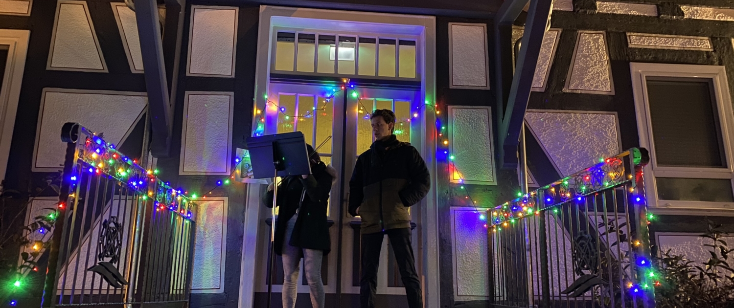 Daneben gab es immer wieder Auftritte aus den Reihen der Schülerschaft selbst: So inszenierte das Biohaus eine unglaublich goldige Performance zu Bruno Mars. Während die jüngsten Schüler:innen tanzten und sangen, schunkelte die gesamte Internatsgemeinschaft mit. Und traditionell sang Schüler Felix Müller mit seiner begnadeten Stimme Weihnachtslieder für die Gruppe und wurde in diesem Jahr musikalisch von Friederike mit ihrer Geige unterstützt.