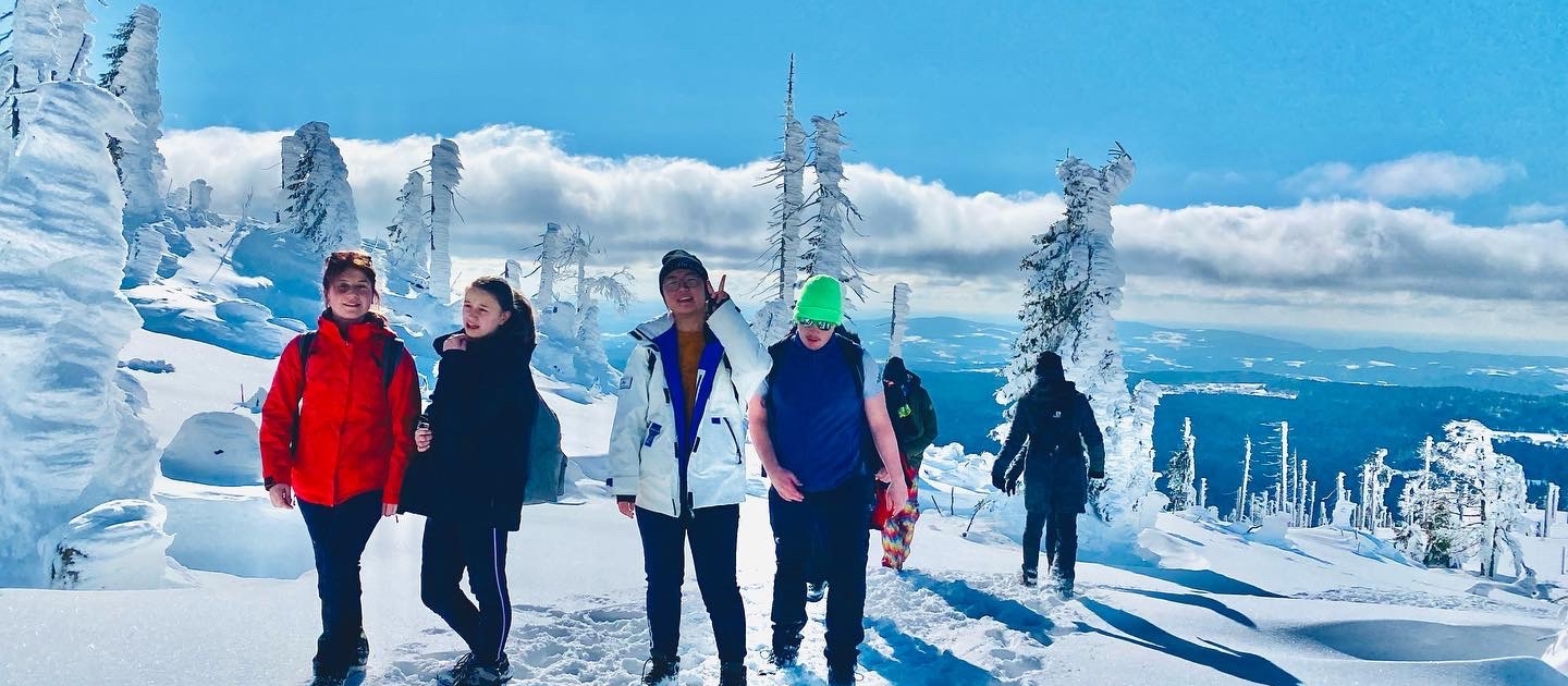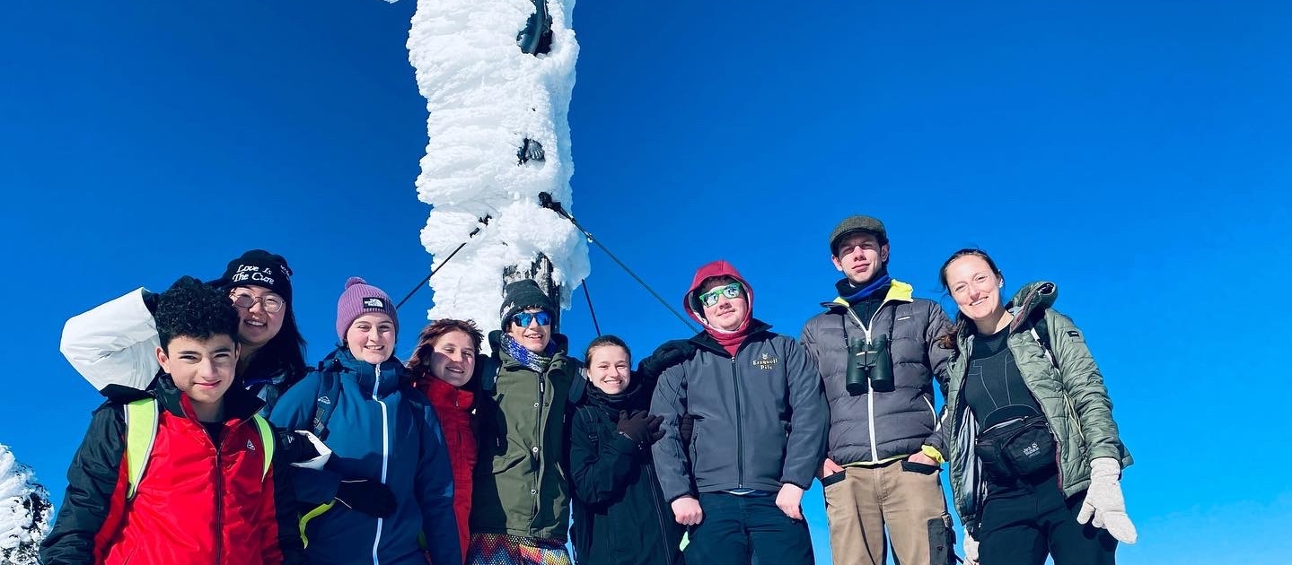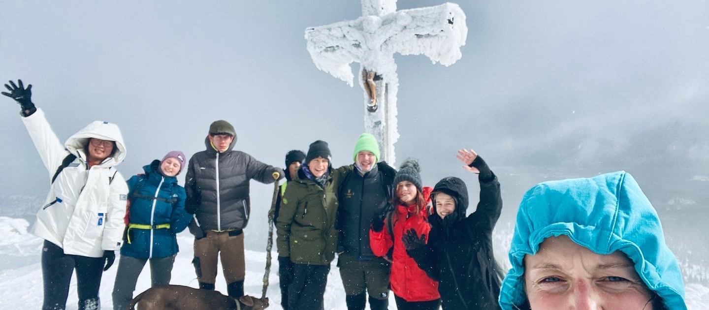 Der Weg war beschwerlich, tief sackte man in den hohen Schnee ein und die Steigung zum Gipfel raubte noch einmal Kräfte, doch alle Schüler:innen waren derart begeistert von der Natur, dass sie die Schmerzen in den Beinen nahezu vergessen konnten.