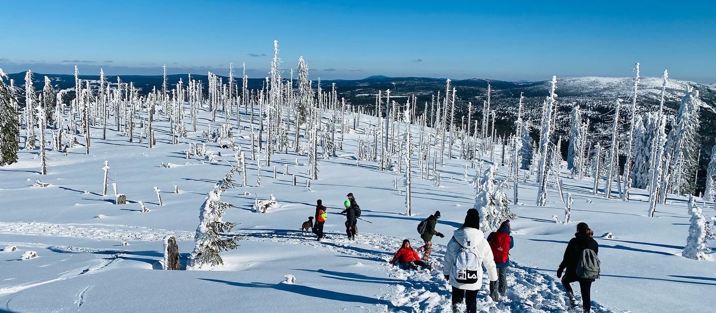 Das Wochenende nach den Halbjahreszeugnissen nutzten Schüler:innen des Internats Steinmühle, um den Winter noch einmal richtig im Bayerischen Wald zu genießen. So erlebte die kleine Delegation bei besten Kaiserwetter im Nationalpark Bayerischer Wald zwei Wandertage voller Sonne, Schnee, Spaß und Solidarität.