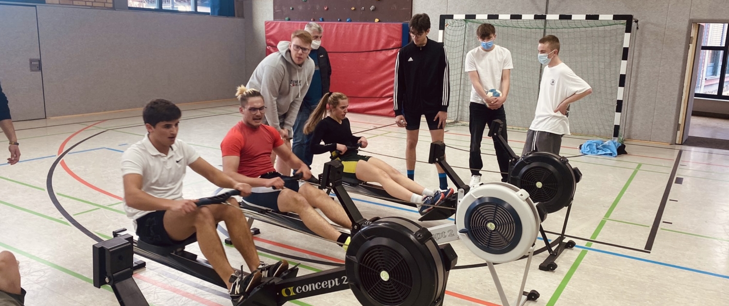 Die Steinmühle nahm in diesem Jahr auch erstmalig am ErgoCup verschiedener Internatesschulen teil. Acht externe und interne Schüler:innen, von denen ein Großteil bei Rudern und Sport Steinmühle Marburg e.V. trainiert, traten von uns an. So fuhren Delegationen der Internate via Online-Liveschalte zeitgleich um die Wette: Welche Gruppe schaffte die zwei Kilometer auf dem Ergometer am schnellsten? Die männlichen Ruderer der Steinmühle belegten in der Kategorie der 16-17jährigen mit Lennart Holly und Fabian Seidel sowie auch bei den 18+ mit Maxim Dyck, Jamal Jaber und Sarah Kremer hierbei sogar die ersten Plätze.