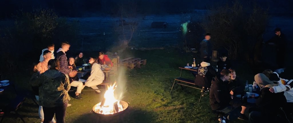 Im Westfalenhausgarten wurde bei Einbruch der Dunkelheit noch das Lagerfeuer entzündet, um noch länger in der Geselligkeit verweilen zu können.