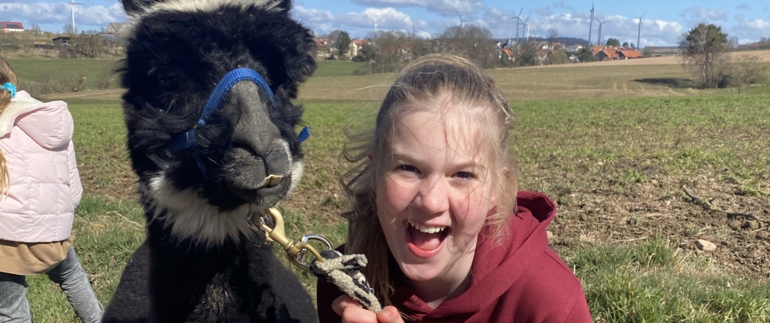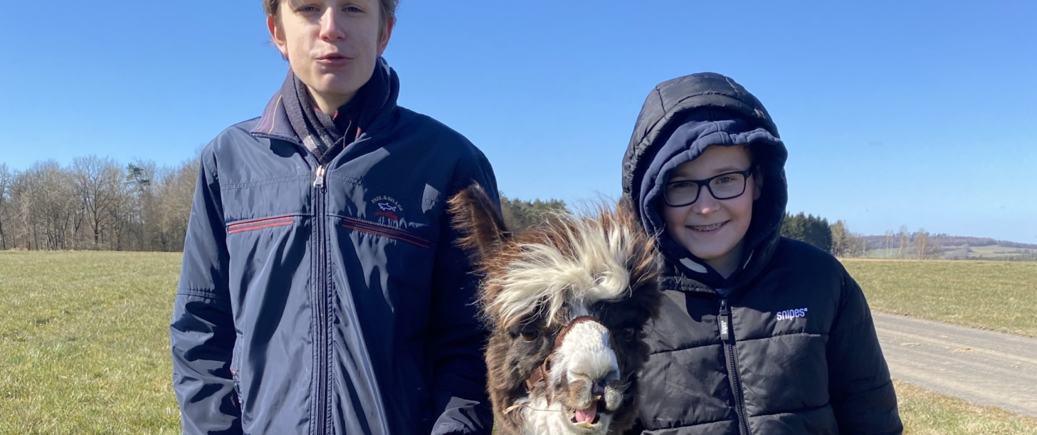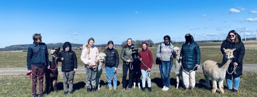 Am Samstag wurde den Schüler:innen viel Abwechslung geboten. So fuhr eine kleine Delegation in den Vogelsbergkreis, um dort gemeinsam mit fünf süßen Alpakas über Feld und Wiesen zu streifen.