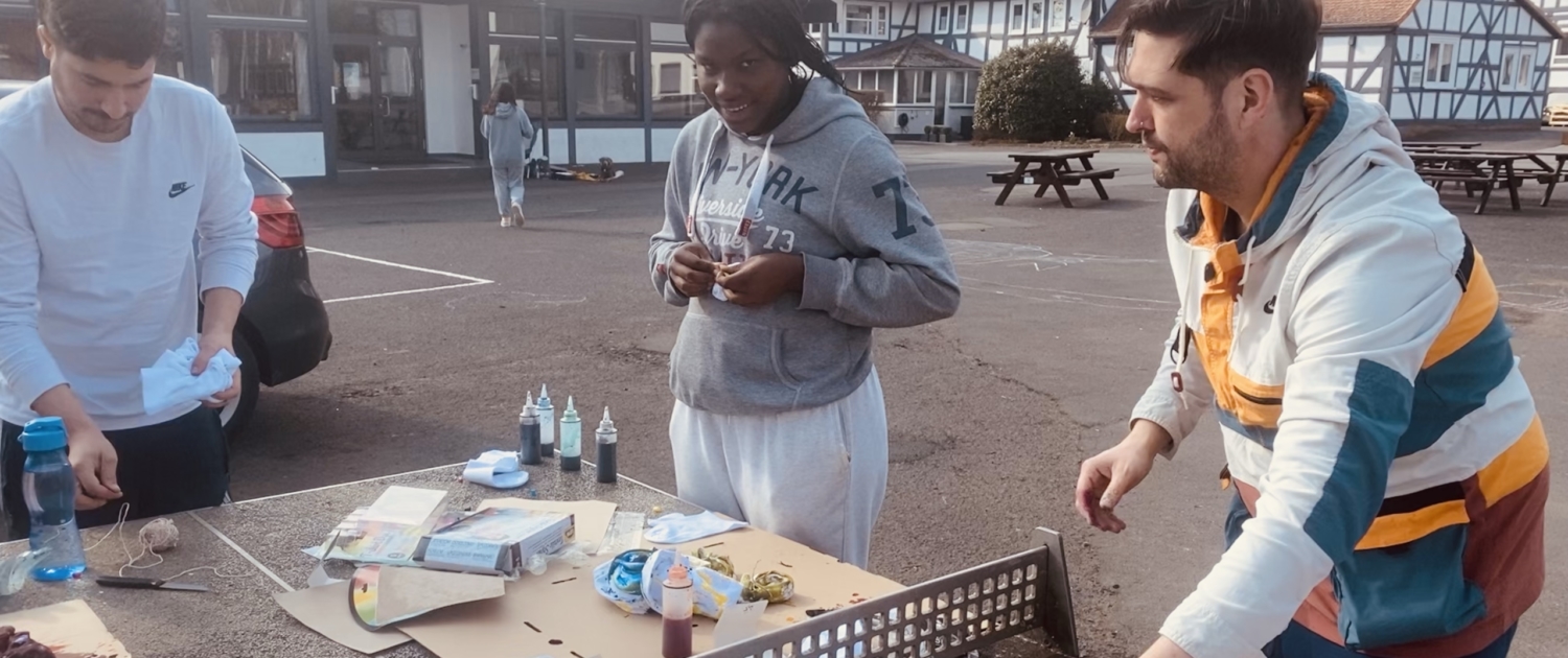 Und wer dann noch nicht genug Abwechslung am Wochenende hatte, konnte sich beim Outdoor-Box-Training oder beim Ultimate-Frisbee auf dem Sportplatz in der Sonne auspowern, während andere Schüler:innen es beim gemeinsamen Crêpesbacken oder dem Batiken von Socken und T-Shirts etwas gemütlicher angingen.