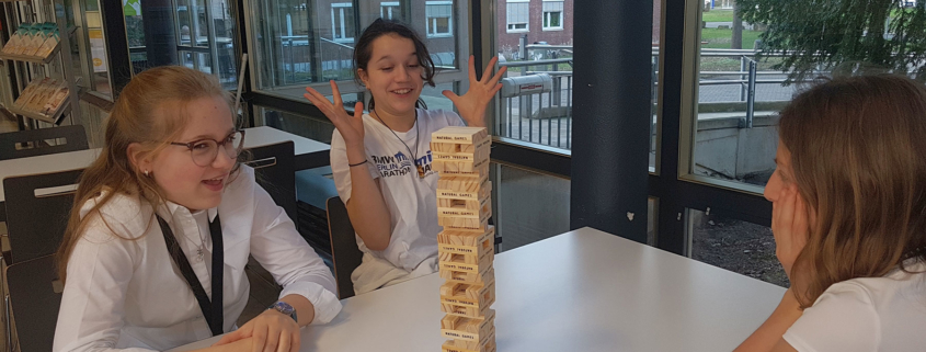 Nach der Mittagspause hatten wir etwas Zeit, um uns die anderen Projekte anzusehen und Spiele, wie beispielsweise Jenga oder Mogelmotte, zu spielen. Als auch diese Zeit vorbei war, stellten wir Vermutungen an, was im darauffolgenden Workshop passieren würde. Mit unserer Annahme, dass es ein Trommel-Workshop werden würde, lagen wir falsch. Der Jonglier-Workshop (wir lagen also vollkommen daneben) bot uns viele Möglichkeiten, auch die anderen Teilnehmer näher kennen zu lernen. Letztendlich gab es noch Pizza, wonach wir alle zufrieden zur Jugendherberge aufbrachen und uns dort noch die Bäuche mit Süßigkeiten vollschlugen.