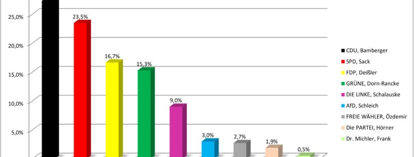Als Schulprojekt zur politischen Bildung fanden an der Steinmühle im Vorfeld der Landtagswahl am 8. Oktober für die Jahrgangsstufen 9-13 wieder die Juniorwahlen statt. Wie Fachlehrerin Eva Katharina Rink berichtete, gaben die Schülerinnen und Schüler am 4. und am 6. Oktober jeweils ihre Wahlkreisstimme und ihre Landesstimme ab. In den Grafiken ist zu sehen, wie an unserer Schule gewählt wurde – hinsichtlich der Landesstimme auch im Vergleich zum Gesamtergebnis aller in Hessen teilnehmenden Schulen. Die Wahlbeteiligung lag an der Steinmühle mit 85,1 Prozent höher als im Landesdurchschnitt (82,7 Prozent).