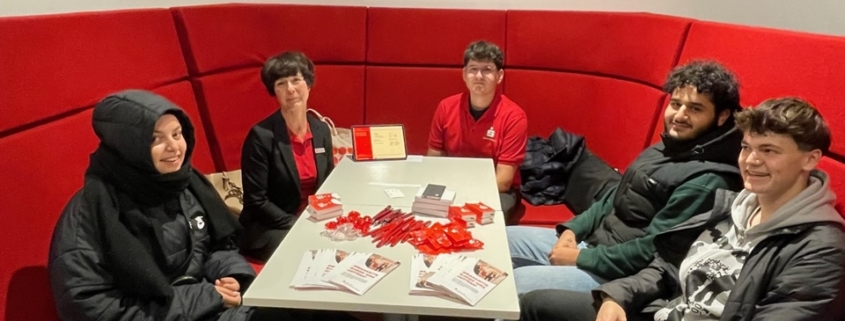 Alljährlich gehört das Atrium der Steinmühle für einen Abend im November dem Jahrgang 12 und Vertreter:innen des Rotary-Clubs Marburg-Schloss. Unter dem Motto „Schüler fragen – Profis antworten“ haben die jungen Erwachsenen die Möglichkeit, sich über einzelne Berufe zu informieren, sich Einblicke zu verschaffen und Fragen zu stellen.