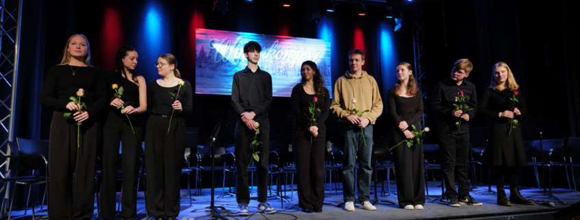 Die Zuschauerinnen und Zuschauer erlebten, wie Schulleiter Björn Gemmer abschließend bemerkte, eine wirklich beeindruckende Gesamtvorstellung und eine stimmungsvolle Veranstaltung, die Dank des Teams Sound & Light um Matthäus Otte auch technisch gut aufgestellt war. Als Anerkennung gab es von Schulleitungsmitglied Dirk Lange Rosen für alle Solistinnen und Solisten und ein Sträußchen für die Leistungen bei Programmzusammenstellung und Organisation, die in bewährter Hand von Ulrike Wilmsmeyer lag.