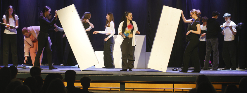Danach kam im Stile von Bertold Brecht eine Szenenfolge, bei der gesellschaftliche Ungerechtigkeiten aufgezeigt wurden – dargestellt durch den DS-Kurs 13 von Dagmar Müller. Dieser Beitrag erhielt besonders viel Applaus!