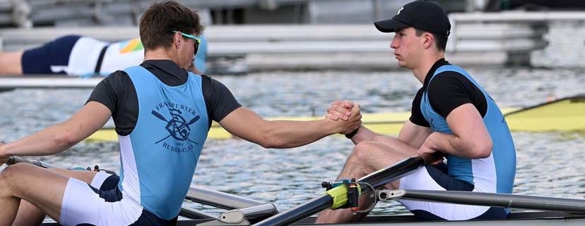 Der Trainer lobte auch die enormen Leistungen von Maurits Juhre. Zusammen mit Johannes Germano fuhr Maurits, der zuvor schon in München beeindruckt hatte, die zeitschnellsten Einerrennen. Maurits ging auch mit seinem Frankfurter Ruderpartner im „Entwicklungszweier“ auf die Strecke, und das mit einem sagenhaften Erfolg: Von insgesamt 15 Startern fuhren sie sie schnellste Zeit ein. „Beide trainieren in vorbildlicher Weise“, erklärte Strohmenger und sieht in dieser Bootsbesetzung eine sehr gute Perspektive für 2025.