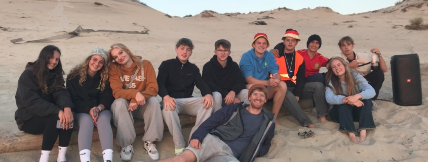 Die folgenden Surf-Sessions führten zu immer mehr Erfolgen und wir merkten, dass man mit der richtigen Technik und einigen Tricks schnell Fortschritte macht. Abends saßen wir zusammen am Strand, machten Lagerfeuer und genossen die untergehende Sonne am Strand von Carcans Plage. Mit unserem erfahren Surflehrer Tim trauten sich die Mutigsten schon raus, um die höheren „grünen“ Wellen zu surfen, andere vertieften ihre Grundkenntnisse im „Weißwasser“. Auch mit unseren gemeinsamen Spikeball-, Volleyball- oder Fußball-Turnieren stärkten wir unsere Klassengemeinschaft und verbrachten viel Zeit miteinander.