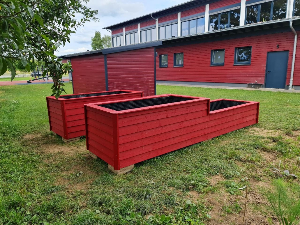 In Trägerschaft von Förderverein Steinmühle unter Vorsitz von Jasmine Weidenbach und der Zimmerei Holzbau Jasky aus Stadtallendorf-Wolferode erhielt die Bilinguale Grundschule Steinmühle neue Hochbeete zur Fortsetzung ihres Gartenprojektes. Nachdem der Förderverein bereits zu Jahresbeginn neue Gartengeräte und ein Gartenhäuschen zur Verfügung gestellt hatte, um die Grundschulkinder bei der Bepflanzung ihres Gartens zu unterstützen, wurden nun die neuen Gartenhochbeete angeschafft und fachmännisch in verschiedenen Höhen montiert. Hierbei zeigten sich auch einige Schülerinnen und Schüler als wahre Könner am Akkuschrauber!