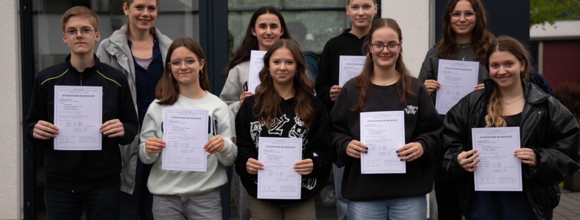 Um das europäisch anerkannte französische Sprachdiplom DELF zu absolvieren, haben sich in diesem Jahr auch viele Jüngere herangetraut und ihre erste DELF-Prüfung mit dem Niveau A1 erfolgreich absolviert. Wir freuen uns über die bestandene Prüfung von Emma Edelmann, Hannah Fischer, Felice und Sophie Gurschi, Mattis Hoffmann, Lotta Steinfeld und Anna-Lena Wilhelm aus Klasse 8.