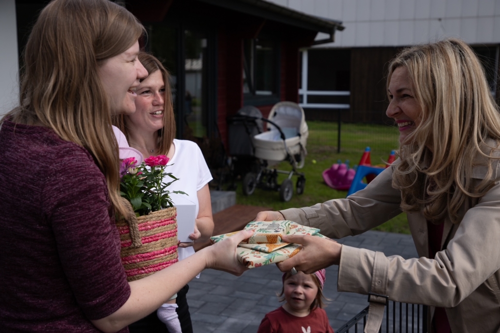 „Wir haben großes Glück, eine Stiftung vor Ort zu haben, die solche Projekte fördert“, erklärte Vaupel zu Beginn seiner Ansprache. Um möglichst viele Kriterien als familienfreundlicher Arbeitgeber zu erfüllen, möchte die Steinmühle für ihre Mitarbeiterinnen und Mitarbeiter die Möglichkeit schaffen, ihre Kinder auch während ihrer Arbeitszeit in sichere und zuverlässige Hände zu geben. Zwei professionelle Kindertagespflegerinnen, Sarina Rösler und Debora Schmidt vom Verein Kindertagespflege Marburg-Biedenkopf, sorgen in zwei Gruppen mit je maximal fünf Kindern dafür, dass dies in vollem Umfang gelingt.