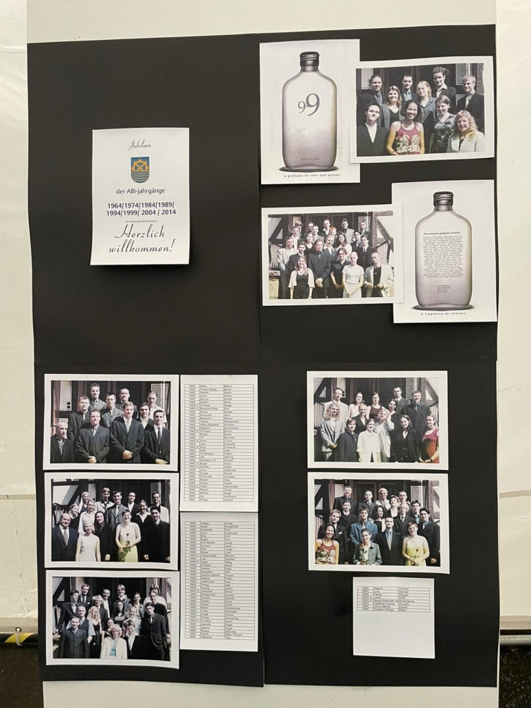 „Zahlreiche Ehemalige diverser Abitur-Jahrgänge waren zum Herbstfest an der Steinmühle erschienen, auch aus den 70er und sogar aus den 60er Jahren“ berichtete Schulleiter Björn Gemmer. Besonders viele Ehemalige kamen aus dem Abi-Jahrgang 2014, einem G8-bedingten Doppeljahrgang. Große Freude herrschte auch beim Abi-Jahrgang 1999, er feierte sein 25Jähriges ausgelassen im Festzelt. Die Ehemaligen waren gerührt, dass eigens für sie ein Treffpunkt im Festzelt geschaffen und gestaltet wurde. Insbesondere die Gestaltung der Foto-Wände aller Jubiläumsjahrgänge durch Edeltraud Buurman kam sehr gut an.
