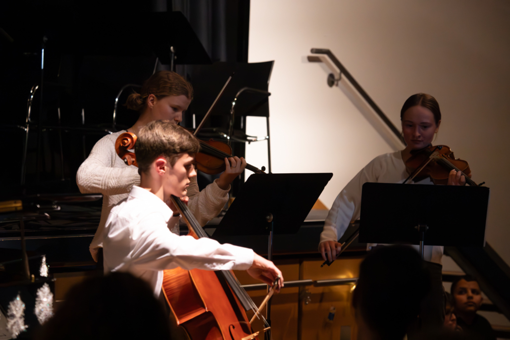 Mit einem 75minütigen Bühnenprogramm voller Abwechslung unterhielten die Schülerinnen und Schüler ihre Gäste. Einige Anwesende – auch auf seiten der Eltern – erlebten die Weihnachtsfeier des Internats zum ersten Mal! Das lockere Programm überzeugte durch seine Vielfalt. Von klassischen Stücken bis hin zu selbstentworfenen Filmen oder Tänzen war alles dabei, und die jungen Menschen freuten sich über viel Wertschätzung für Darbietungen und Arrangements.