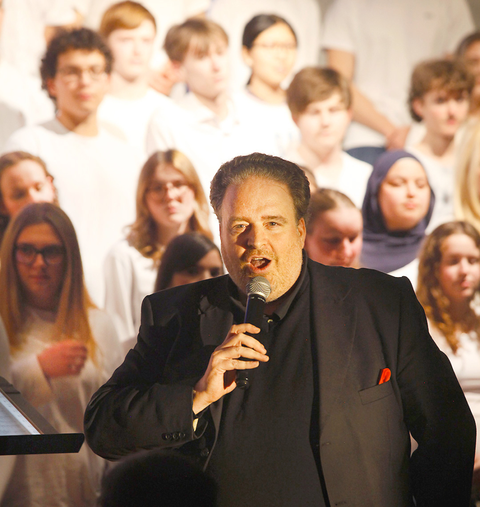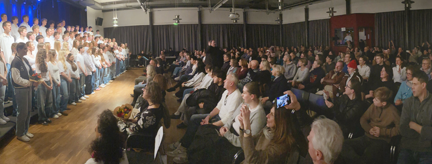 Beim Dirigieren des 120köpfigen Oberstufenchors zu Stücken von „I’m walking“ bis „Hollywood Hills“ konnte Chorleiter Daniel Sans seine Wehmut nicht verbergen. Es war das letzte Mal, das der Tenorsänger, Dirigent und Musiklehrer der Steinmühle die Gruppe des Abitur-Jahrgangs 13 durch eine öffentliche Veranstaltung führte. Mit weiteren Balladen wie „Rolling in the Deep“ und „Bohemian Rhapsody“ ging der Revueabend seinem Ende entgegen.