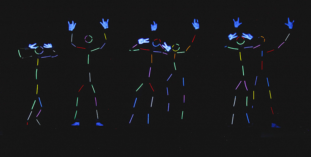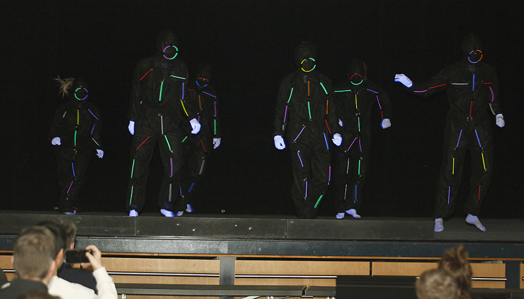 Ein Kontrastprogramm bildete die Tanzgruppe des Jahrgangs 12, die mit einheitlicher Kleidung und ihren Bewegungen zu „Beat it“ von Michael Jackson bei Schwarzlicht wie von einem anderen Stern erschien.