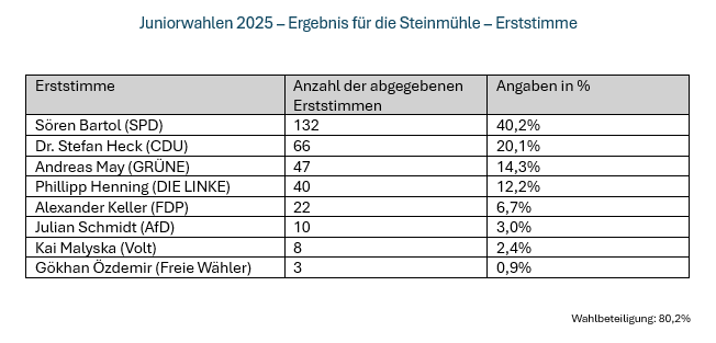 Am 19. Februar 2025 fanden an der Steinmühle erneut die Juniorwahlen statt, dieses Mal im Rahmen der vorgezogenen Bundestagswahlen.