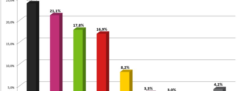 An dritter Stelle stehen die Grünen mit 17,8 Prozent knapp vor der SPD (16,9 Prozent).