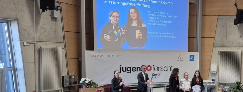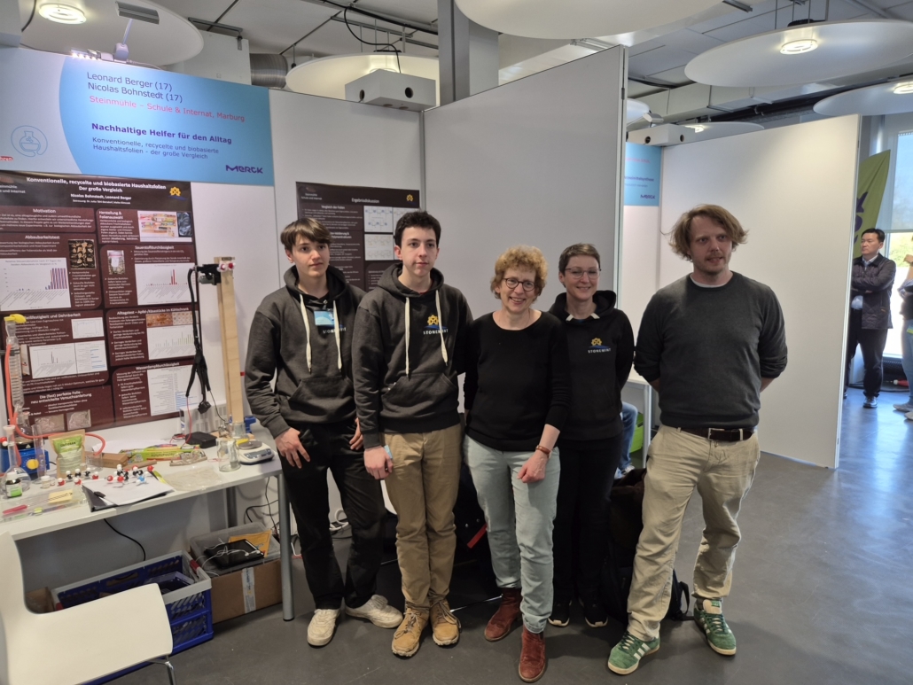 Platz 2 im Bereich Chemie sowie den Sonderpreis Qualitätssicherung durch Zerstörungsfreie Prüfung holte die Steinmühle beim Landeswettbewerbsteil Jugend forscht in Kassel, wo die jüngeren Teams antraten. Natürliche vs. synthetische UV-Filter – ein Vergleich lautete das Thema des Duos, bestehend aus Anna-Lena Griesler und Maya Fischer.