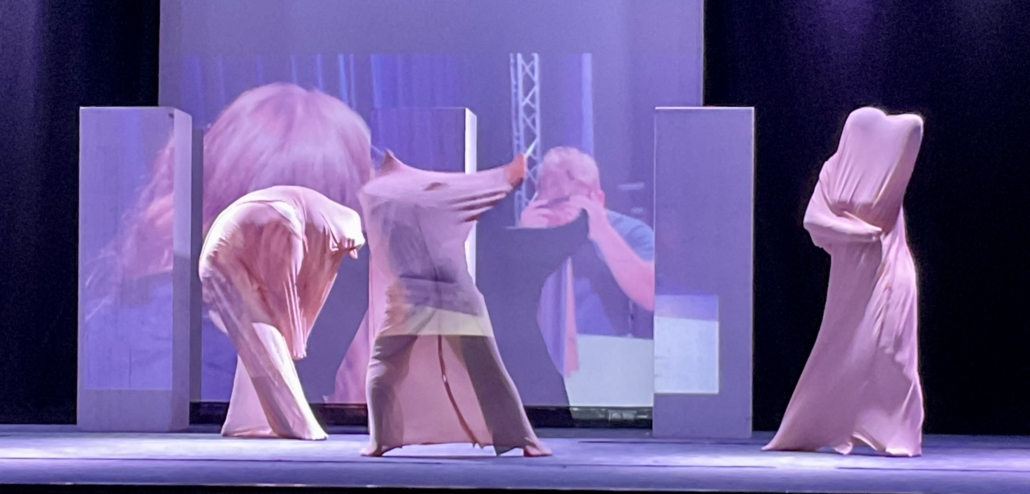 Mit einer medial geprägten Szene beginnt das Stück. Die Fixierung auf Schönheitsideale, gepaart mit dem ständigen Tragen von Kopfhörern, führt in der Öffentlichkeit zu weniger realer, spontaner Interaktion. Stattdessen nehmen Selbstinszenierung und Selbstvergewisserung einen zentralen Platz ein – dokumentiert durch Selfies und Stories, die in den sozialen Medien geteilt werden.