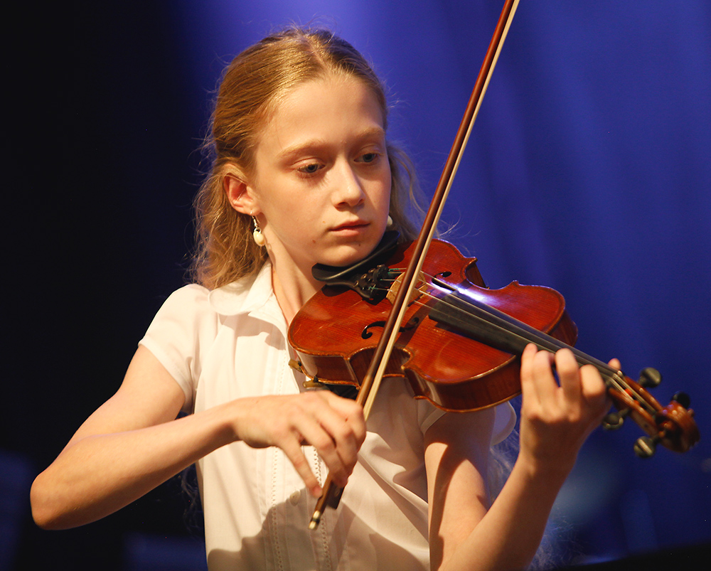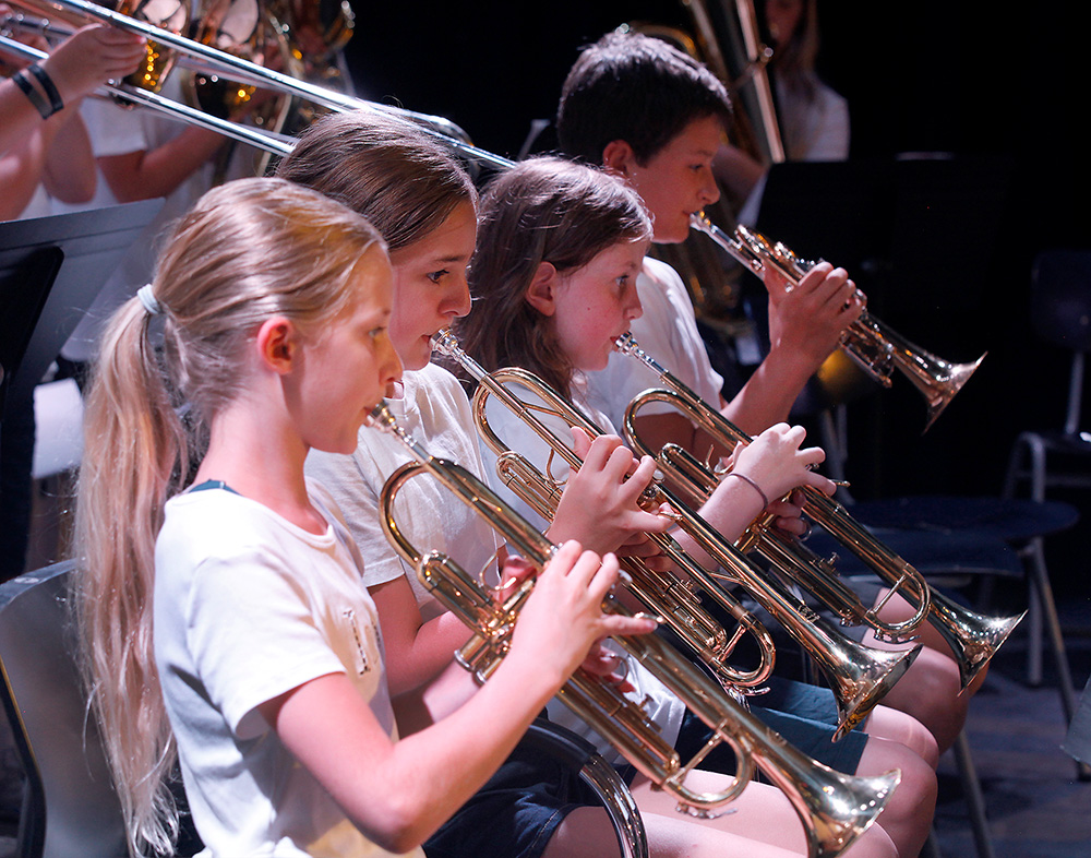 Die Bläserklasse 5 unter Leitung von Stephan Reissig eröffnete die Veranstaltung, deren Zuhörer das Forum unserer Schule komplett füllten. Und auf welchem musikalischen Niveau sich die Steinmühle bewegt, zeigte anschließend auch das eindrucksvolle Violinenspiel der Fünftklässlerin Juna Bamberger.
