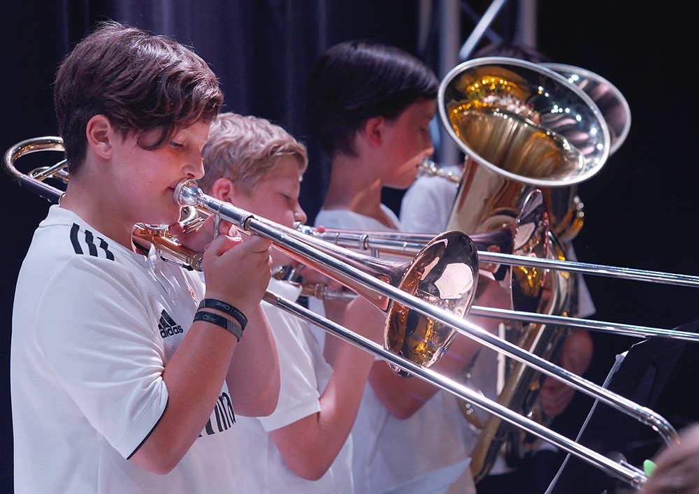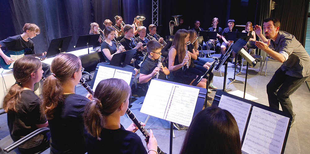 Das Sommerkonzert endete mit imposanten Beiträgen der Bläserklasse 6, geleitet von Andreas Jamin, und der Konzertband von Stephan Reissig. Dort bringen sich junge Künstlerinnen und Künstler ein, die auch im weiteren Schulverlauf noch Freude am Musizieren und Präsentieren vor Publikum haben.
