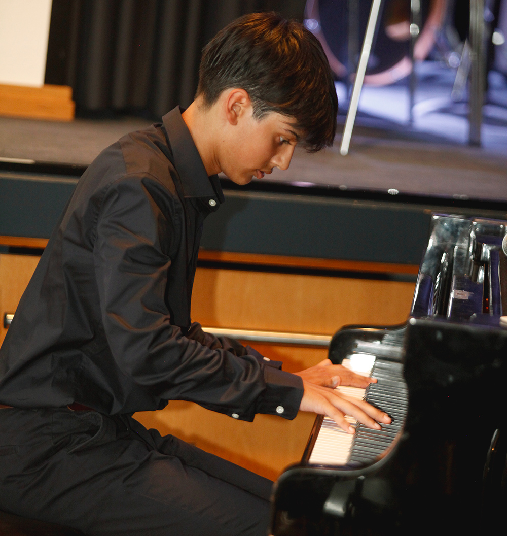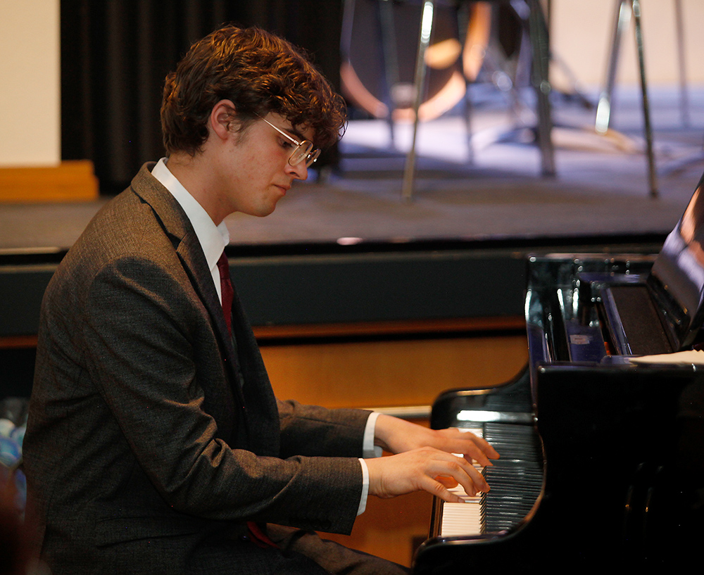Der Chor der Klasse 6, am Piano begleitet von Daniel Sans und dirigiert von Anna Prokop, entfaltete sein volles Stimmvolumen, bevor Janna Gosejacob (Klasse 8) den Titel „Hometown Glory“ von Sängerin Adele präsentierte. Die beeindruckenden musikalischen Darbietungen setzte Joshua Müller-Brodmann (Klasse 12) mit einem Chopin-Stück am Klavier fort, am selben Instrument abgelöst von Nik Tadjiki (Klasse 11), der einen Beitrag von Paul de Senneville präsentierte.