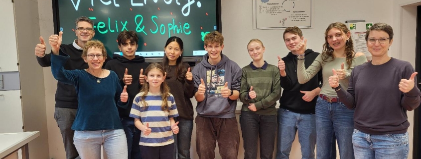 Liebe Sophie, lieber Felix: Egal, wie ihr abschneidet: Ihr seid einfach großartig! Das MINT-Team der Steinmühle drückt euch ganz fest die Daumen und wünscht euch viel Erfolg!