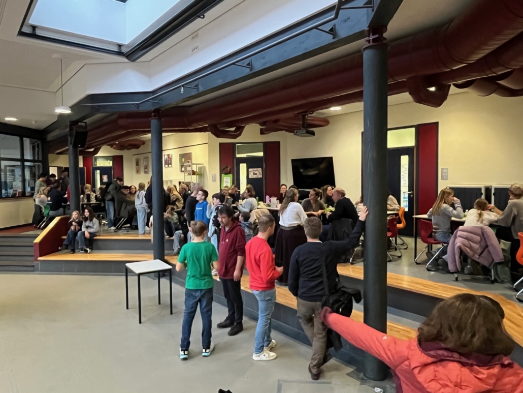 Das Bild eines netten Miteinanders bot sich bei der Weihnachtsfeier der Klassen 6 im Centrum. Bei entspannter Stimmung begleiteten kleinere Angebote, unter anderem Basteln, klassenübergreifend den Nachmittag, sodass Kinder, und Erwachsene einen schönen Jahresausklang hatten. „Wir freuen uns, wenn Eltern miterleben, wie entspannt und unaufgeregt, aber gleichzeitig konzentriert der Nachwuchs miteinander bei uns seine Zeit verbringt“, berichtete Theresa Großer im Namen der Klassenleitungen der sechsten Klassen. Das Centrum bietet Kindern zudem ausreichend Platz, im Rahmen geselliger Aktivitäten sich zwischendurch auch einmal die Beine zu vertreten.