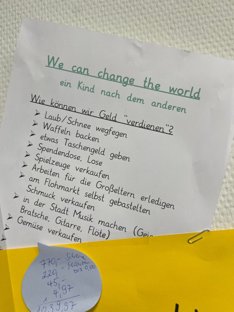 Die anderen Kinder dermaßen hart arbeiten zu sehen – das machte etwas mit der Klasse der Bilingualen Grundschule Steinmühle. So entschlossen sich die Kinder zu den verschiedensten Wegen, um an Spendengelder zu kommen: